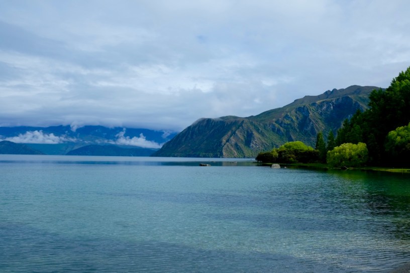 Danach geht es weiter nach Wanaka. Der Campingplatz Lake Wanaka Lakeview liegt zentrumsnah und ist wieder sehr gut ausgestattet. Die Kleinstadt ist eine sehr ruhige, wenngleich doch auch touristische und recht geschäftige Kleinstadt. Der See und die dahinterliegenden Berge geben auch diesem Ort ein malerisches Ambiente. Es fängt wieder zu regnen an, trotzdem mache ich am Abend noch einen Spaziergang durch den Ort, kaufe mir drei Rindersteaks und brate sie mir in der Pfanne in der Küche des Zeltplatzes. Nebenher noch die Flasche Wein leer gemacht und dann beim Sonnenuntergang zufrieden ins Bett gefallen.