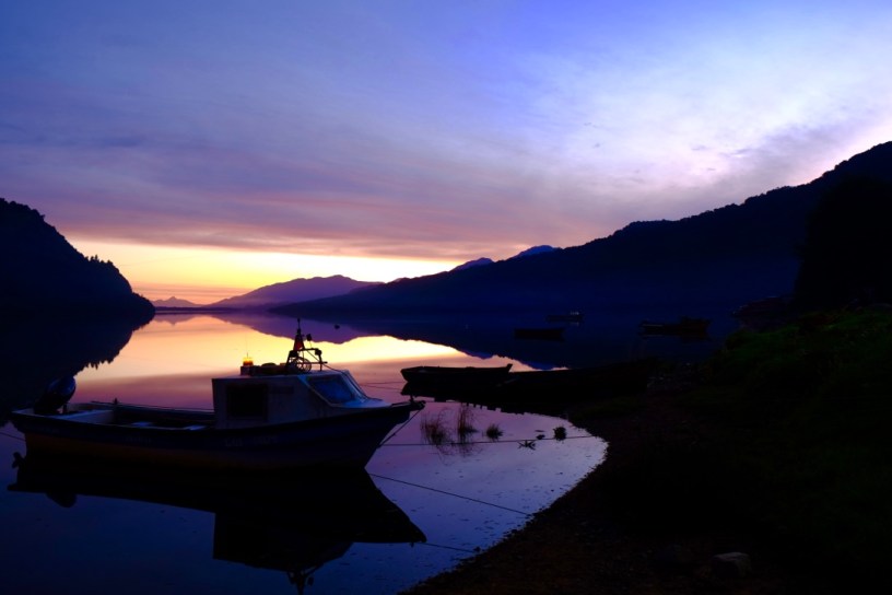 Als es anfängt zu dämmern laufe ich noch durch die Ortschaft. Überall treffe ich auf deutsche Straßennamen, deutsche Restaurationen und Pensionen. Einerseits ist alles sehr beschaulich, andererseits wird an jedem Ende gewuselt: Es werden Wasser- und Stromleitungen verlegt, alte Straßen modernisiert und Brücken gebaut. Nicht nur wegen der am Ortsrand liegenden Thermen wird die Infrastruktur der Siedlung aufwendig aufpoliert. Puyuhuapi liegt schließlich an der Carretera Austral, einem der letzten großen Abenteuer Südamerikas. Aber auch das wird wohl bald Geschichte sein.