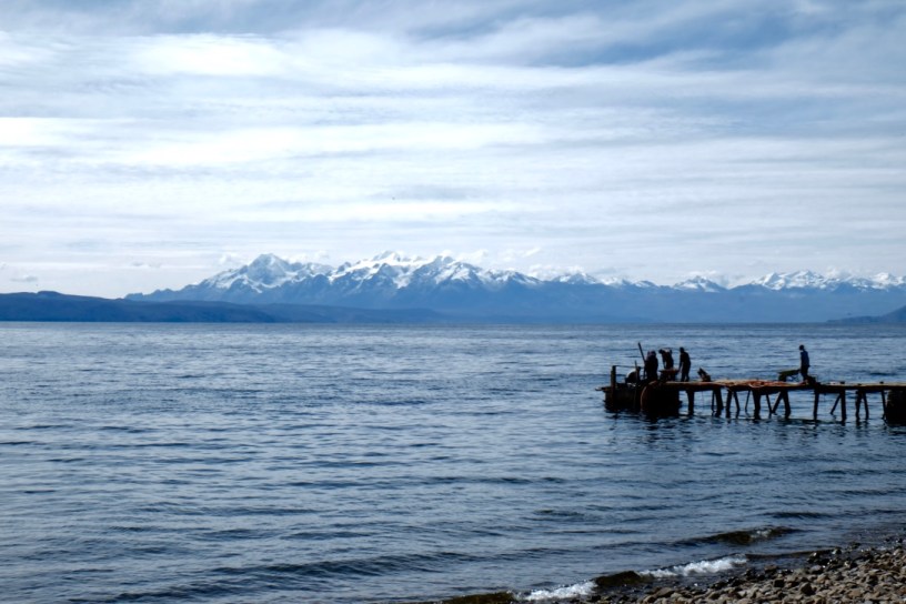 Copacabana ist eine entspannte Kleinstadt, die Menschen sind ausgesprochen freundlich, Essen und Unterkunft ausgezeichnet und sehr preiswert (Zimmer oder 3-Gänge-Menue 4 – 6 Euro). Auch hier gibt es wieder vorzügliche Seeforellen (Trucha) in allen Varianten. In den chilligen Cafés und Restaurants an der Straße hinunter zum Hafen betören mich Reggae- oder Salsa-Rhythmen während ich das kostenlose – aber auch sehr träge – Wifi nutze. Am Straßenrand sitzen wieder „Lebenskünstler“ und fädeln Perlen, Edelsteine und gelegentlich auch billiges Plastik auf Drähte oder Nylonschnüre und verarbeiten Bleche, Holzplättchen oder Steine zu netten Amuletten. An einem kleinen Straßenstand an der Ecke zum öffentlichen Markt finde ich knusprige Baguettebrötchen und duftende Croissants.