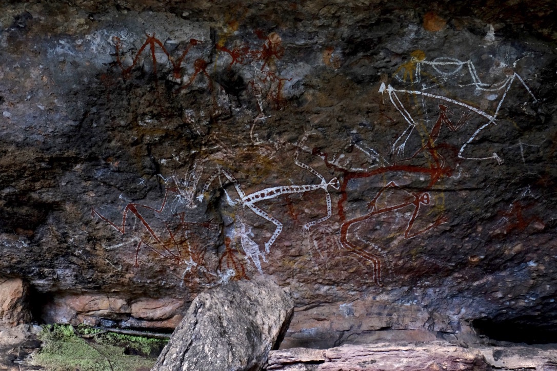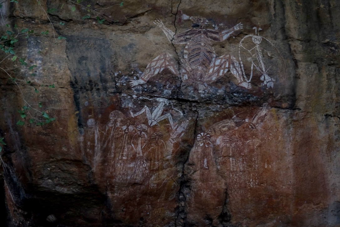Das Land, die Sprachen und die Menschen wurden von Schöpfungswesen geschaffen, die den Menschen das Land anvertraut haben. Jede Region und Sprache wurde einer anderen Gruppe von Menschen anvertraut, was den Ursprung der verschiedenen Stämme erklären soll. Diese Schöpfungsakte fanden in der sogenannten Traumzeit statt. Sie verweist auf das lange Vergangene, ist aber den Menschen als eine Art metaphysischer Parallelwelt allgegenwärtig. Indem sie Rituale und Zeremonien abhalten, die ihnen von ihren Ahnen mündlich oder durch die Felsmalereien überliefert wurden, können sie sich jederzeit in die spirituelle Energie der Schöpfungszeit hineinversetzen. Die Religion der Aborigines kennt keine Gottheiten, statt der Theologie steht die Geografie im Mittelpunkt. Der Einzelne und seine Gruppe sind für immer an das Land gebunden, das ihnen vermacht wurde.