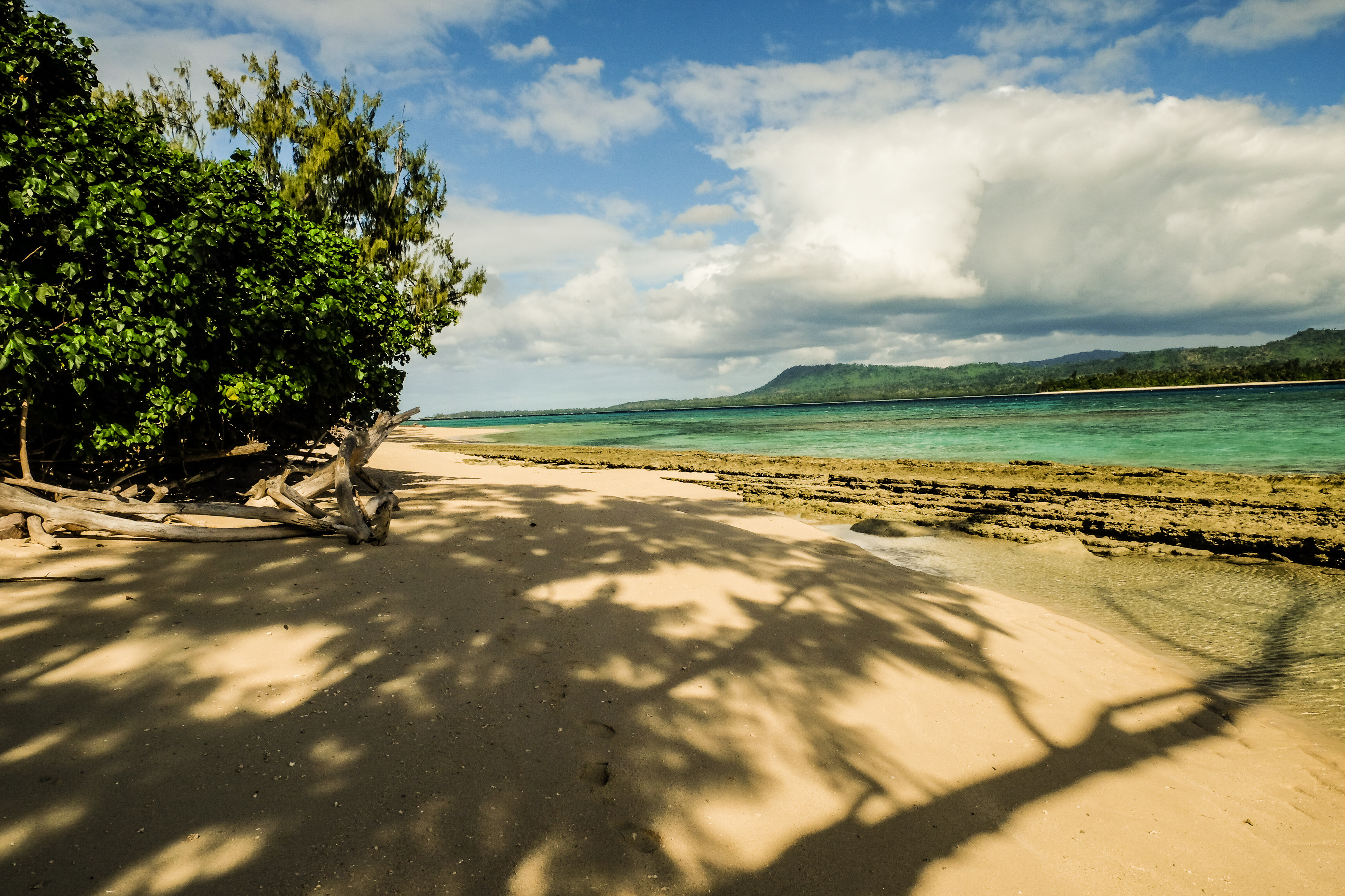 Am Strand spielen die Kinder in den an Land gezogenen Booten. Ein Herr mittleren Alters läuft auf dem feinsandigen Untergrund Stunde für Stunde auf und ab. Es sieht so aus, als spräche er mit dem Meer, manchmal auch mit sich selbst. Am Abend sehe ich ihn wieder, mit einem älteren Begleiter. Wie ich erfahre ist der Herr mittleren Alters geistig und körperlich behindert und der ältere Begleiter sein Vater. Beide gehen sie jeden Tag bei Sonnenuntergang gemeinsam am Strand auf und ab, halten manchmal inne oder unterhalten sich – wahrscheinlich über Gott und die Welt. Am nächsten Tag mache ich einen Spaziergang um die Insel. An einigen Stellen ragen die Felsen bis weit in das Meer hinein. Ich habe meinen Spaziergang so gewählt, dass ich diese Stellen zur Ebbe erreiche und daher auch hier – bei zurückgezogenem Meer – auf Sandboden bzw. über Muscheln und Korallenbänken laufend meinen Weg fortsetzen kann. Die restliche Zeit liege ich am Strand, schwimme im Meer, fahre mit dem Kajak die Küste entlang oder sitze vor meiner Hütte und sinniere – auch über Gott und die Welt. Nach drei Tagen fahre ich mit dem Boot wieder zurück nach Port Villa. Am 30. Juli wird auf dem Festplatz nahe dem Regierungsviertel der Unabhängigkeitstag Vanuatus gefeiert. Auf dem Platz spielen Bands, es gibt leckeres Essen, die Menschen tanzen und singen. Ein richtig schöner letzter Tag auf Vanuatu. Am nächsten Morgen fliege ich weiter über Brisbane nach Bali.